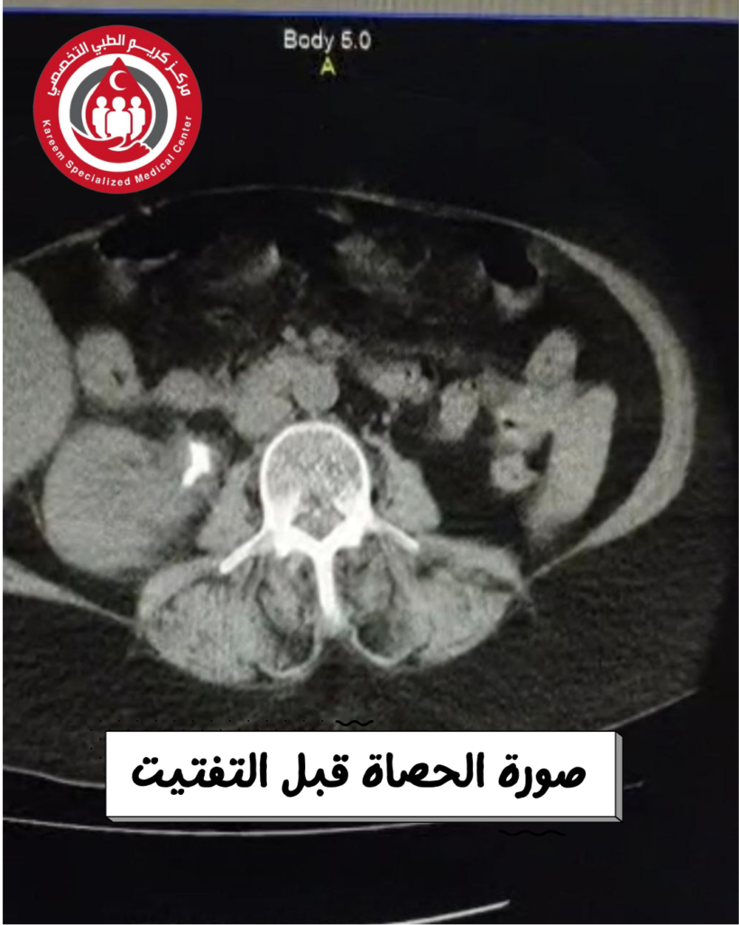 تم اختيار الخيار العلاجي الأحدث والأكثر أمانًا عالميًا، وهو تفتيت الحصاة باستخدام منظار الحالب المرن مع الليزر.